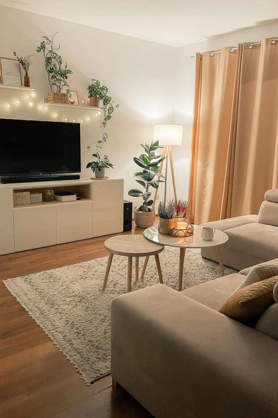 Ruang tamu yang satu ini memiliki pencahayaan yang bagus, salah satunya berasal dari lampu pada sudut ruangan. Lampu tersebut menjadikan ruangan ini tampak nyaman ketika digunakan.