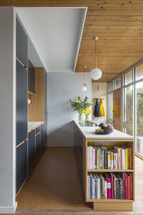 Konsep dapur yang satu ini cukup unik karena memiliki pencahayaan yang bagus dan juga memiliki nuansa perpaduan warna yang cukup menarik. Makin menarik dengan adanya hiasan buku-buku yang tertata rapi, yang bisa jadi adalah buku resep masakan kesukaan.