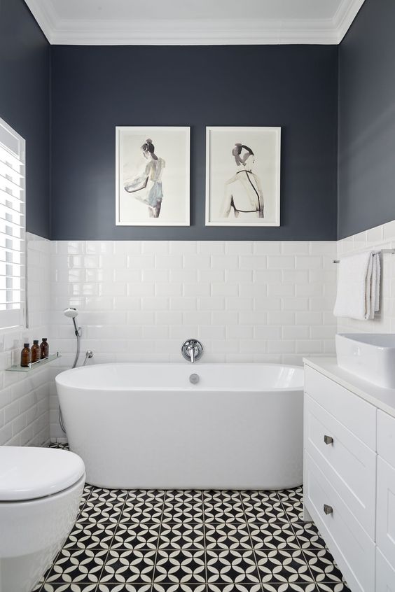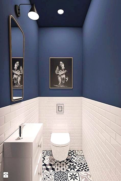 Kamar mandi yang satu ini mengusung konsep modern minimalis. Menggunakan perpaduan warna biru gelap dan juga putih menjadikan kesan warna yang menarik untuk bisa kita ikuti. Ditambah perpaduan pencahayaan yang bagus menjadikan kamar ini terlihat elegan berkonsep modern.